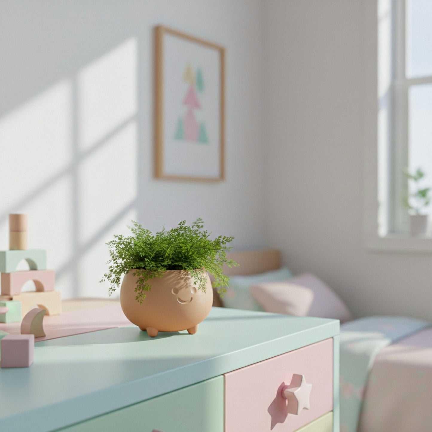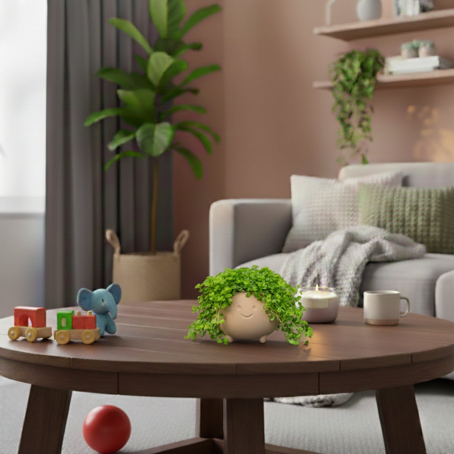 Maak kennis met BollieKop! Een eigenwijze ronde bloempotje op schattige pootjes. BollieKop is als eerste ontsnapt uit de PlantjeKop-wereld.