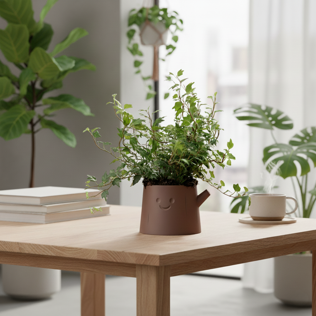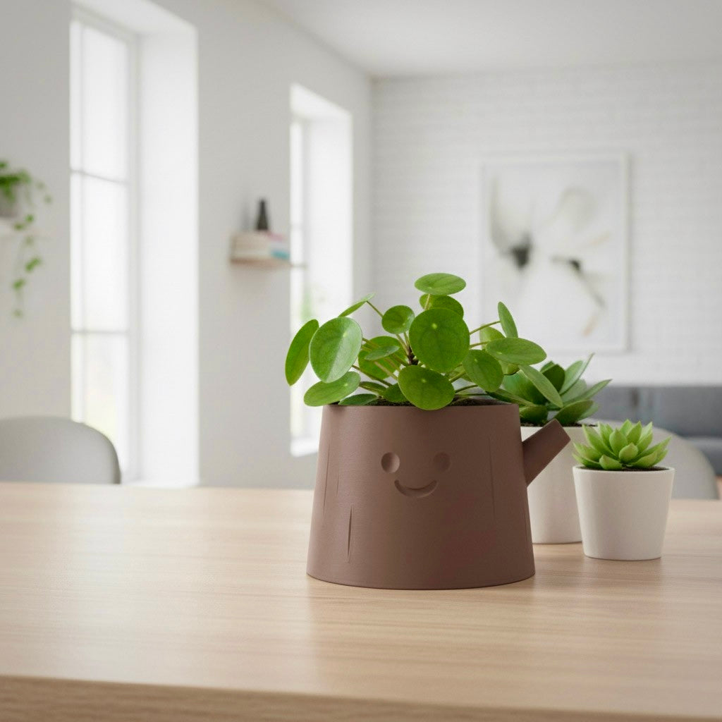 Daar is StamKop! Een stoere bloempotje in boomstijl, gegroeid uit de PlantjeKop-wereld. Met z’n natuurlijke looks fluistert hij: “Zet je plantje hier en groei mee.”
