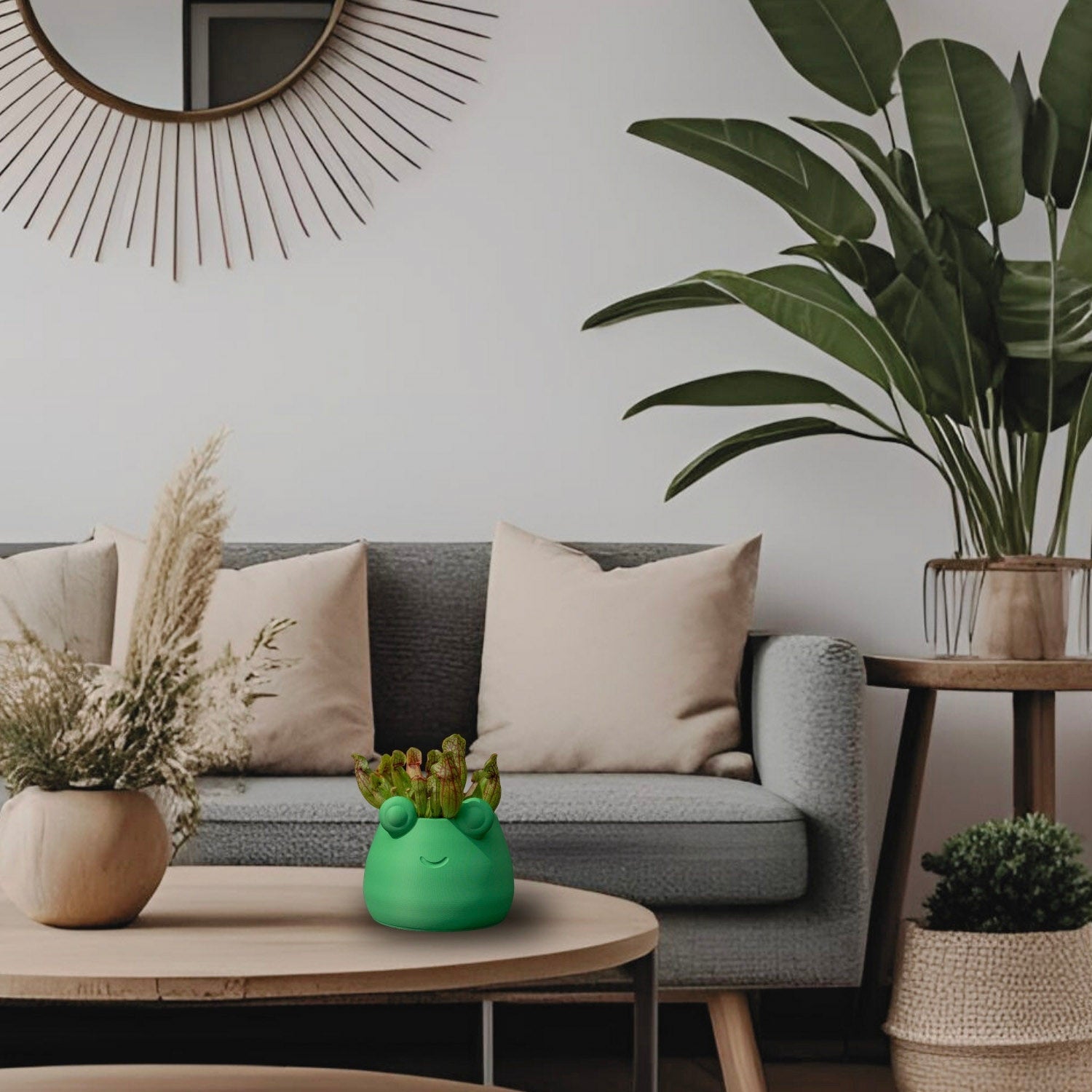 Hé daar is FroggieKop! Een vrolijke bloempotje in echte kikkerstijl, gesprongen uit de PlantjeKop-wereld. Altijd klaar om met een grote kwaak je interieur op te fleuren. Zet er een plantje in en hij springt meteen in het oog.